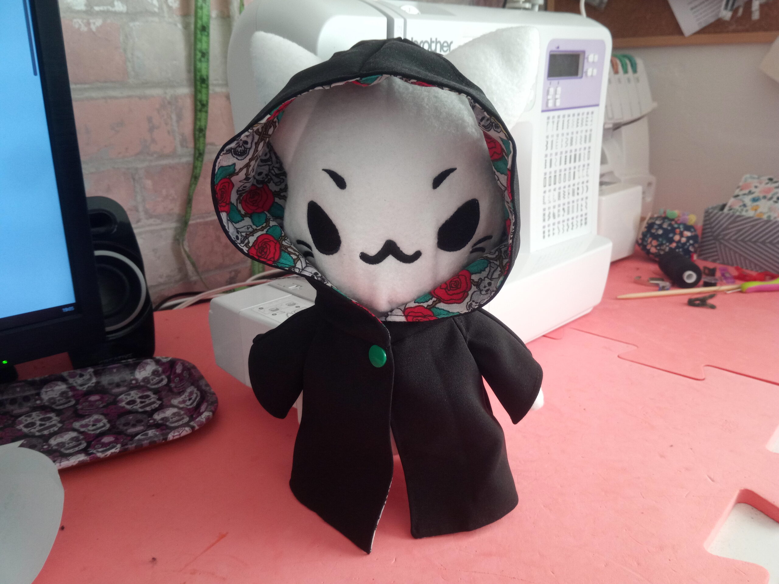 2022, Accessories, Own design / pattern, Sewing Walker basket 09/09/2022 / Old basket was falling apart despite the frame being in perfectly good knick. Took the opportunity to use a canvas fabric I’d had lying around for years (found it cheap in a charity shop) and actually use it up.